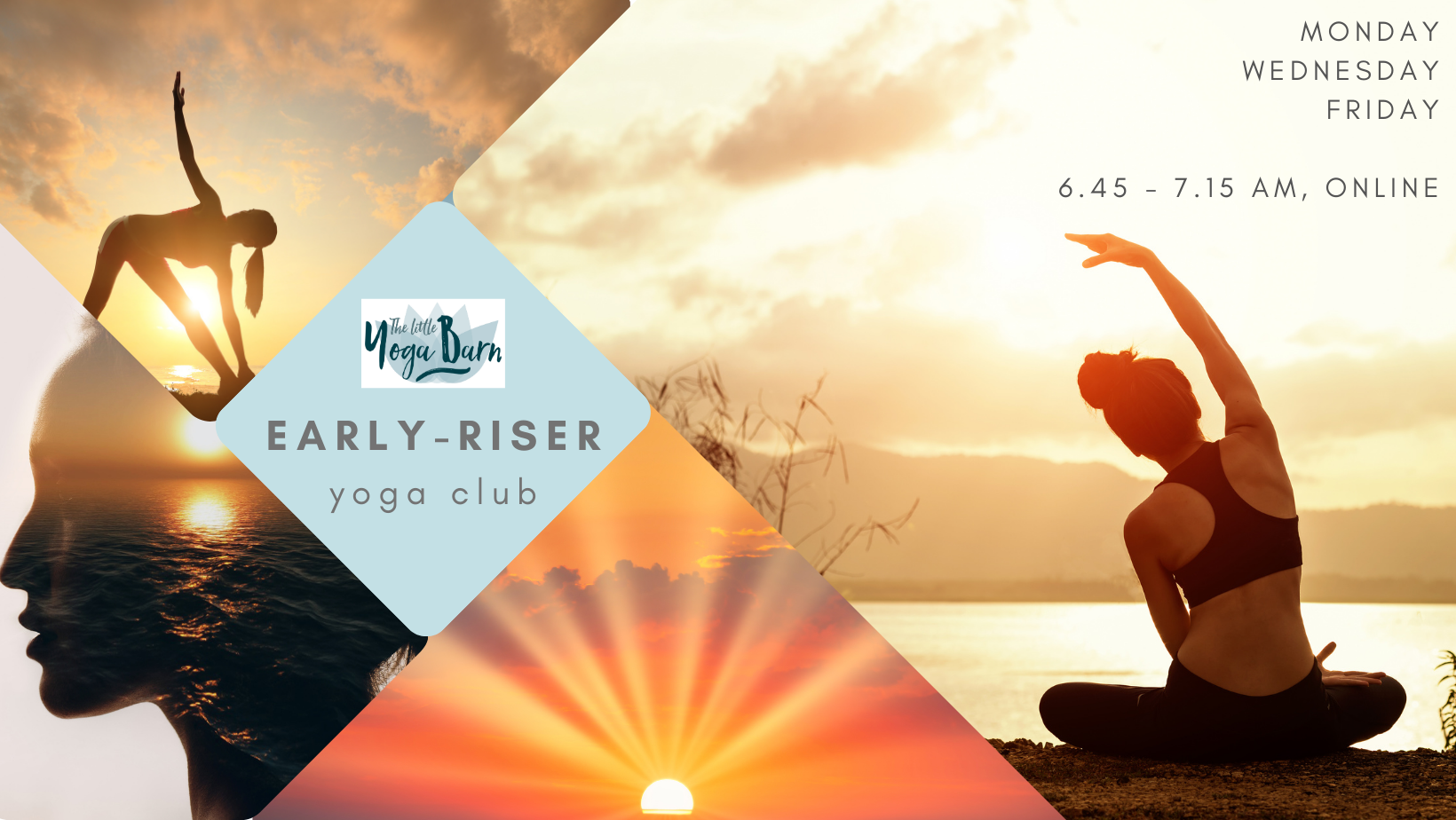 The Early Riser Yoga Club is a monthly class membership that gives you access to three thirty-minute live classes a week + recordings so you can catch up if you miss the live session.